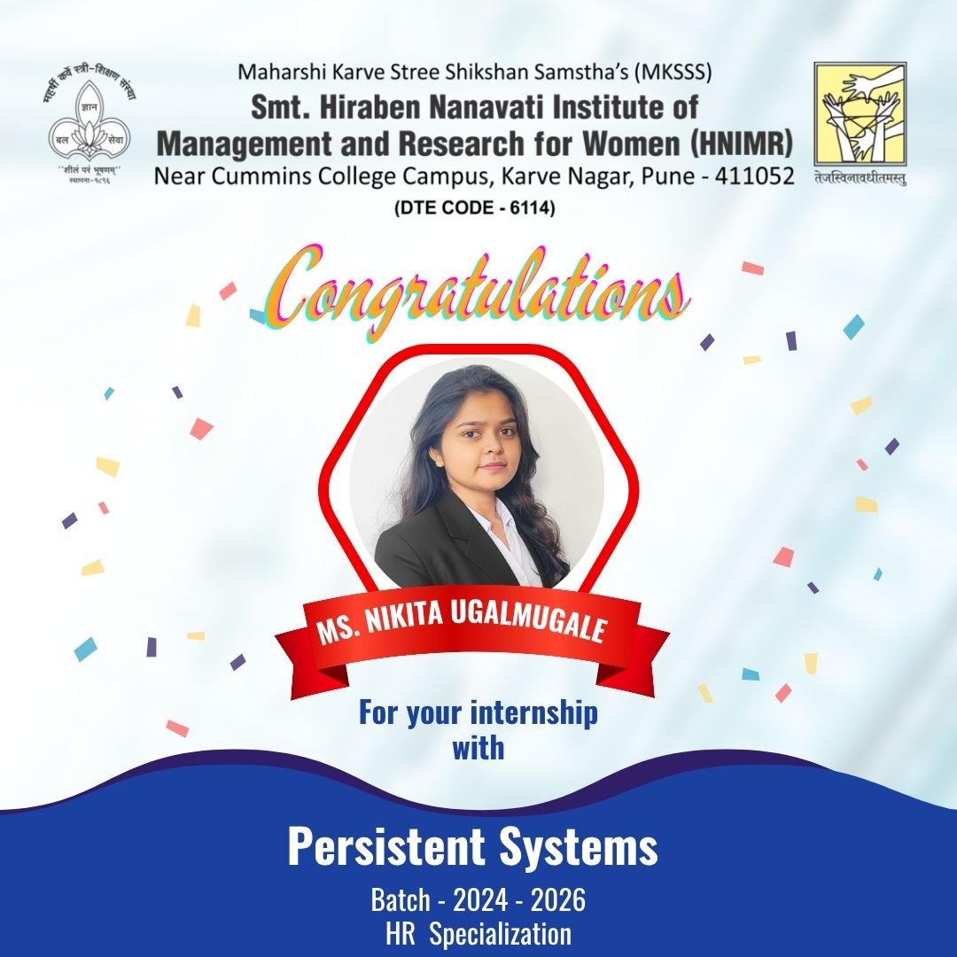 Congratulations to Ms. Nikita Ugalmugale! 🎉Selected for an internship at Persistent Systems — MKSSS’s HNIMR is proud of your achievement! Leave a Comment / Placement / By adminhminr